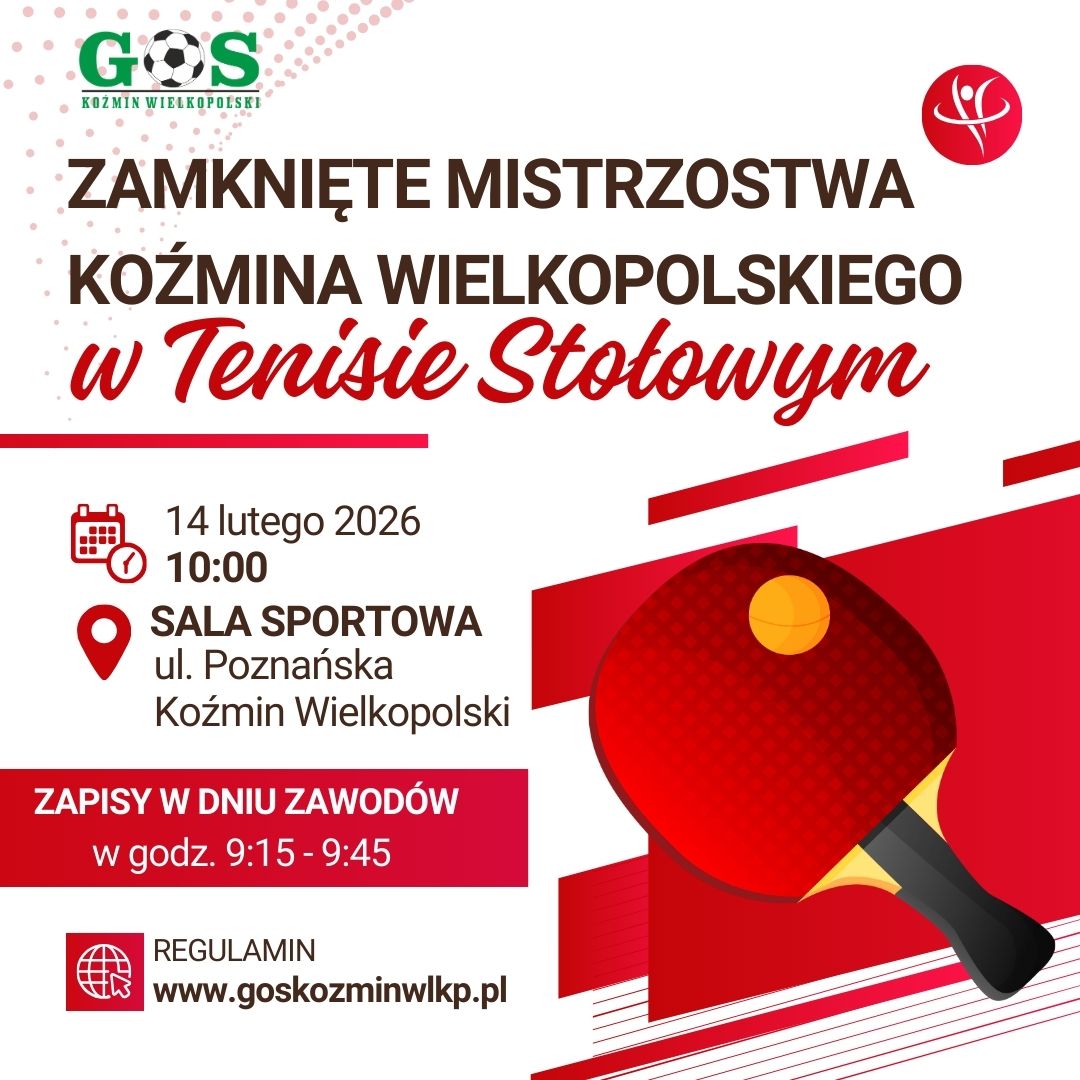 Zamknięte Mistrzostwa Koźmina Wielkopolskiego w Tenisie Stołowym Author Redaktor Posted on 2026-01-21Categories Bez kategorii Czytaj więcej… „Zamknięte Mistrzostwa Koźmina Wielkopolskiego w Tenisie Stołowym”