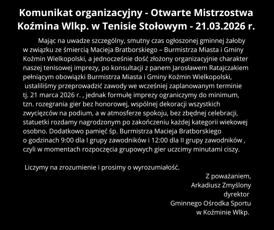 Tenis stołowy w Koźminie Wielkopolskim – wielkie granie już w sobotę! ![]()